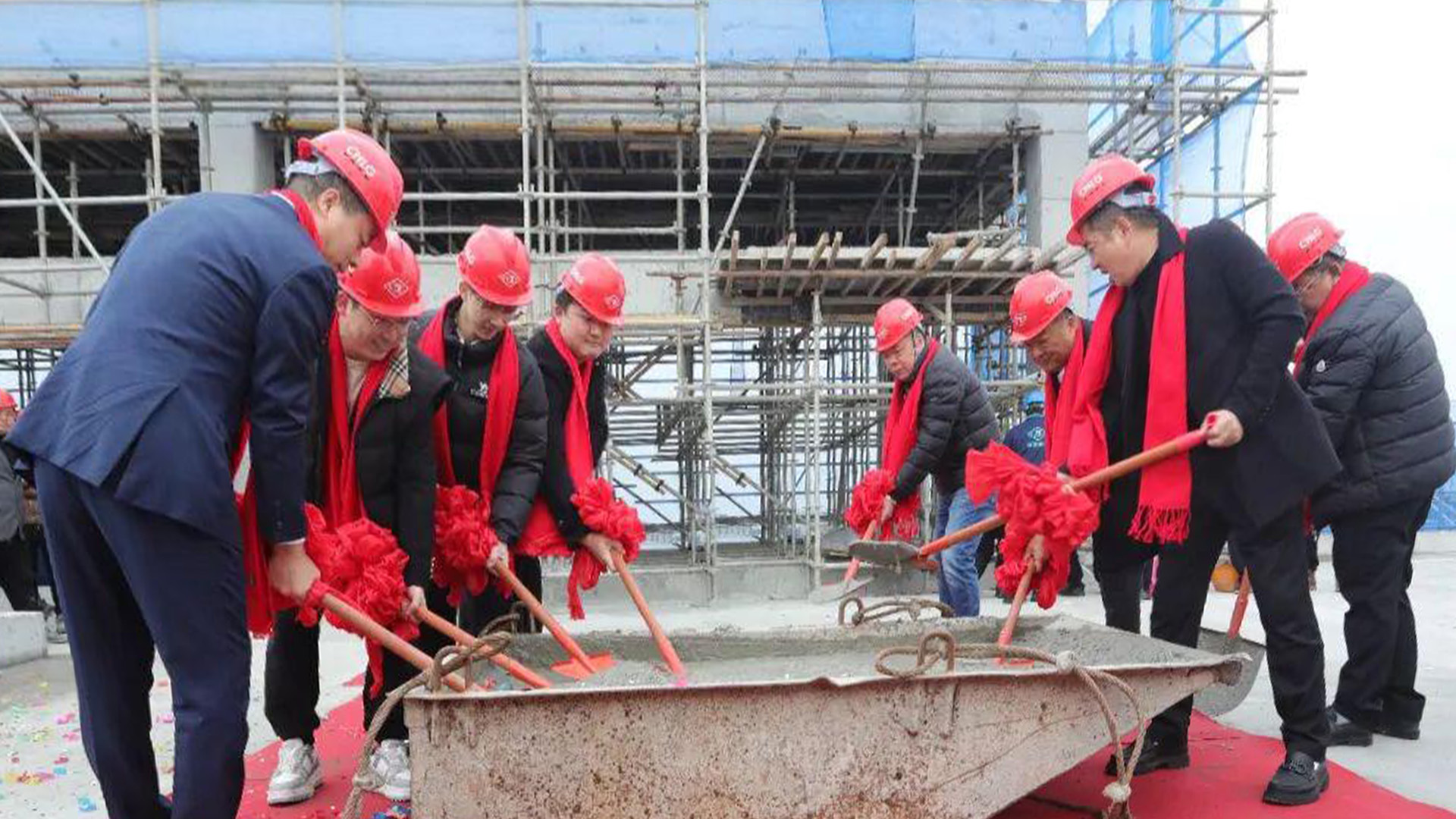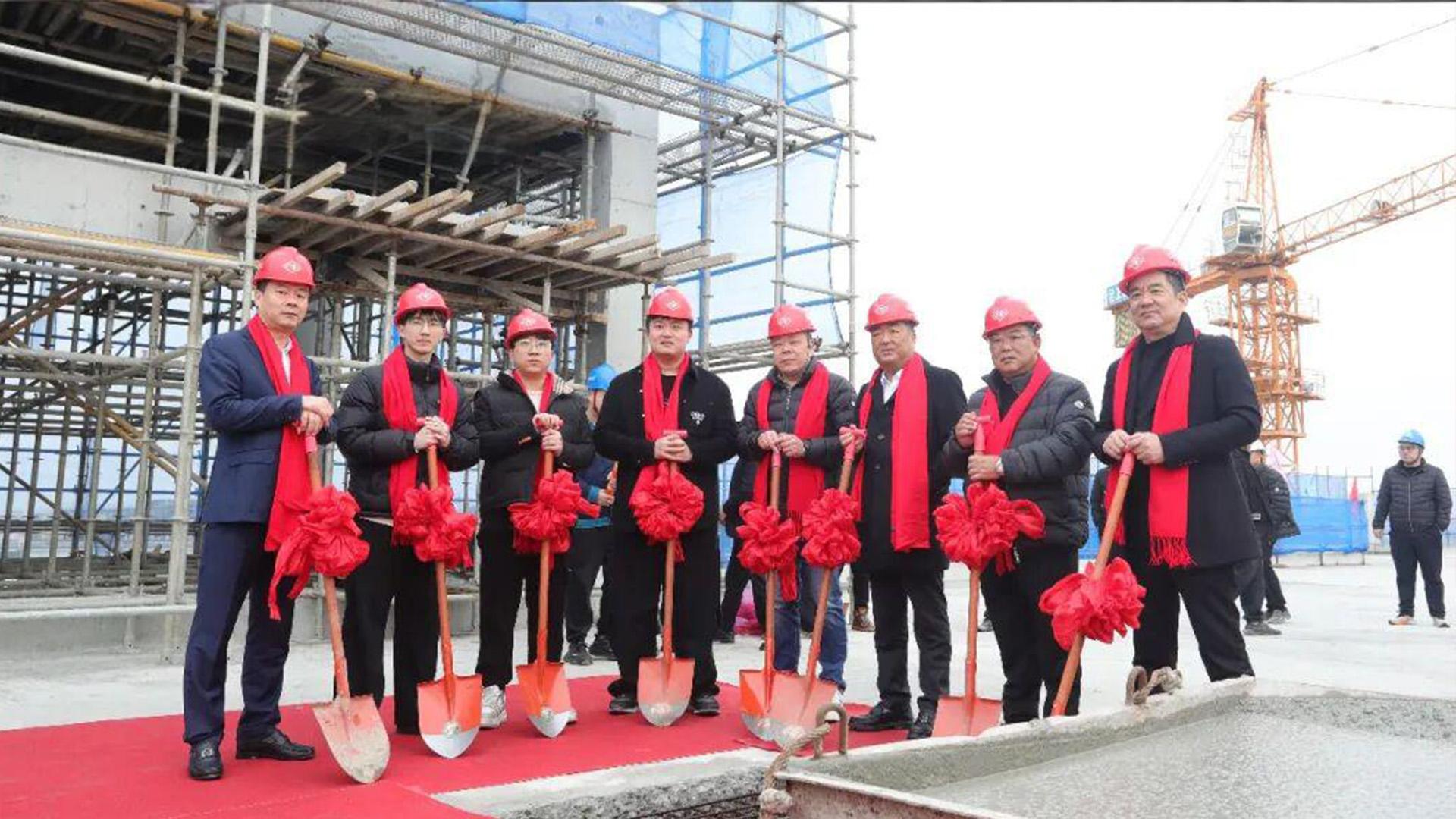 在吉时到来之际,集团主要领导与董事会成员共同执锹培土,为新总部项目完成封顶仪式,一锹一铲,封顶的是阶段性成果,延展的是面向未来的发展蓝图。