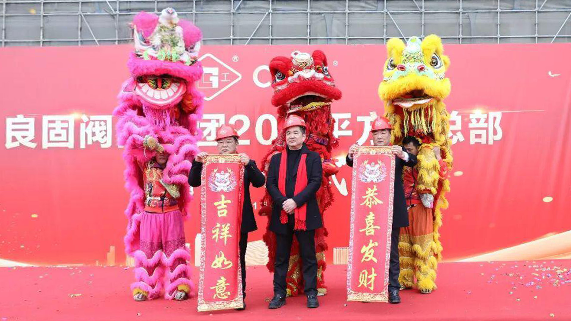 随后,祥狮献瑞,喜气盈门。集团领导共同为祥狮点睛,寓意启智纳福、基业兴旺,也象征着良固事业持续向上、稳步发展。