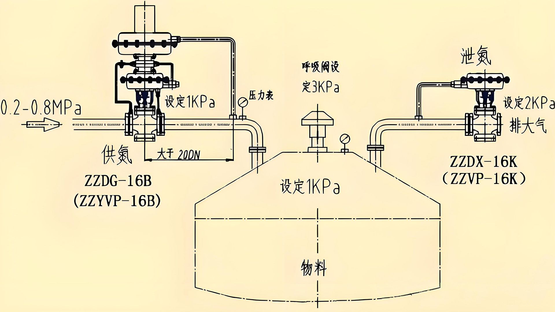 呼吸阀配合: 明确泄氮阀/供氮阀与紧急呼吸阀(PVRV)的分工和压力设定层次关系,避免冲突。