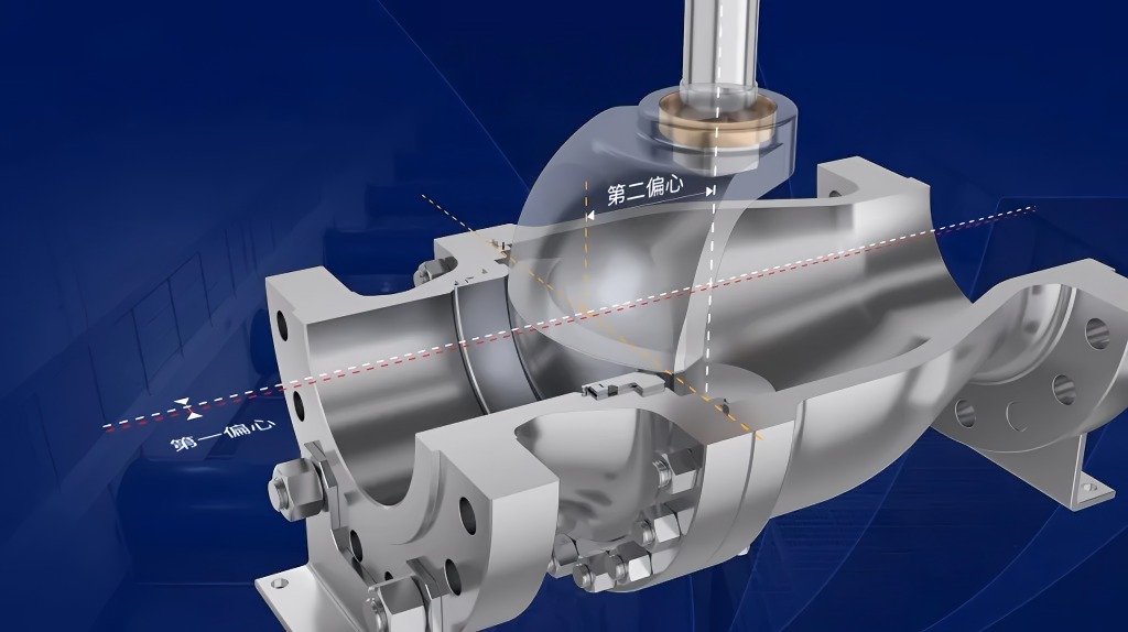 偏心设计扭矩密封:利用凸轮楔紧效应,实现扭矩密封,越关越紧,密封可靠,达到密封自动补偿。