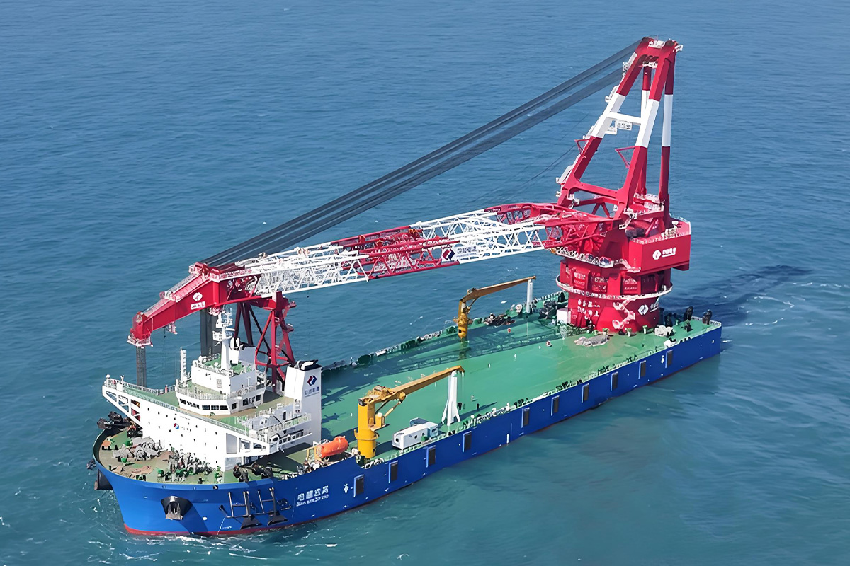 “电建志高”号:总长182米,型宽49米,最大起重能力达3600吨,起重机最大起升高度140米,适用于海上风电基础施工、海上升压站吊装等作业,创下国内同类型起重船作业效能新纪录。
