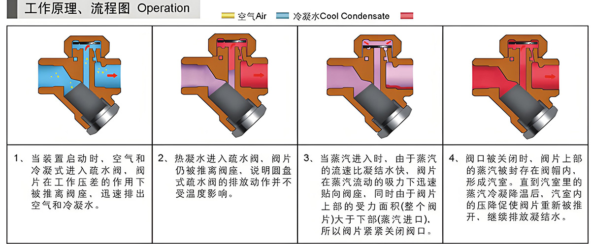 热动力型疏水阀:利用蒸汽压差控制排水,适用于高压、大流量工况(如发电厂蒸汽主管道)。