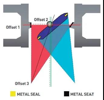 截止阀仅当密封元件处于关闭位置时才会产生一个单一的瞬间接触,三偏心阀借助其三个“偏心”设计,能够实现双向完全关闭,如图3所示。另外,实现金属硬密封的另一个秘诀是采用高强度的Stellite? Gr.21堆焊阀座和不锈钢薄斜锥片式的密封圈。