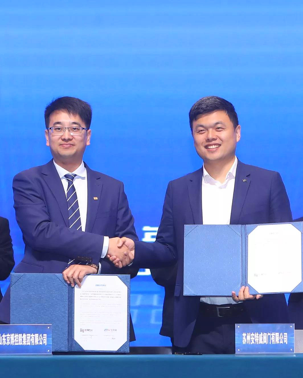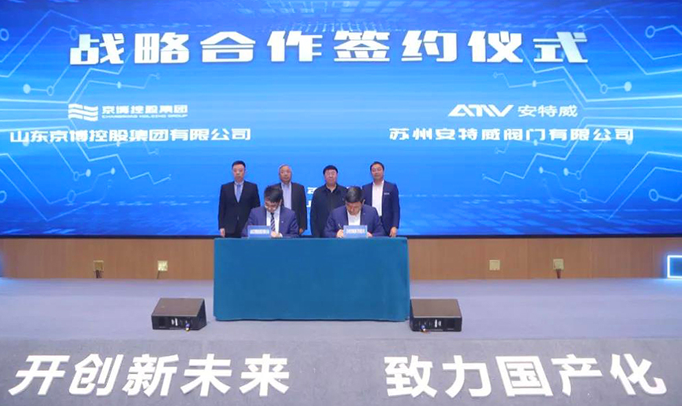在大会上,安特威与京博控股集团成功签订战略合作协议。中国石化联合会副会长兼秘书长赵俊贵、中国石化联合会副会长孙伟善,山东京博控股集团有限公司副总裁祝伟、山东京博控股集团有限公司工业装备供需链分公司总经理王健,苏州安特威阀门有限公司董事长吴俊伟、营销副总栾翔等领导出席签约仪式。