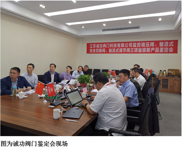 4月29日,由江苏省机械行业协会、江苏省阀门工业协会联合组织,在常州市召开了江苏诚功阀门科技有限公司研发的“监控调压阀(NPS6 CLASS600)”、“轴流式安全切断阀(NPS16 CLASS600)”、“轴流式调节阀(NPS16 CLASS600)”新产品鉴定会。