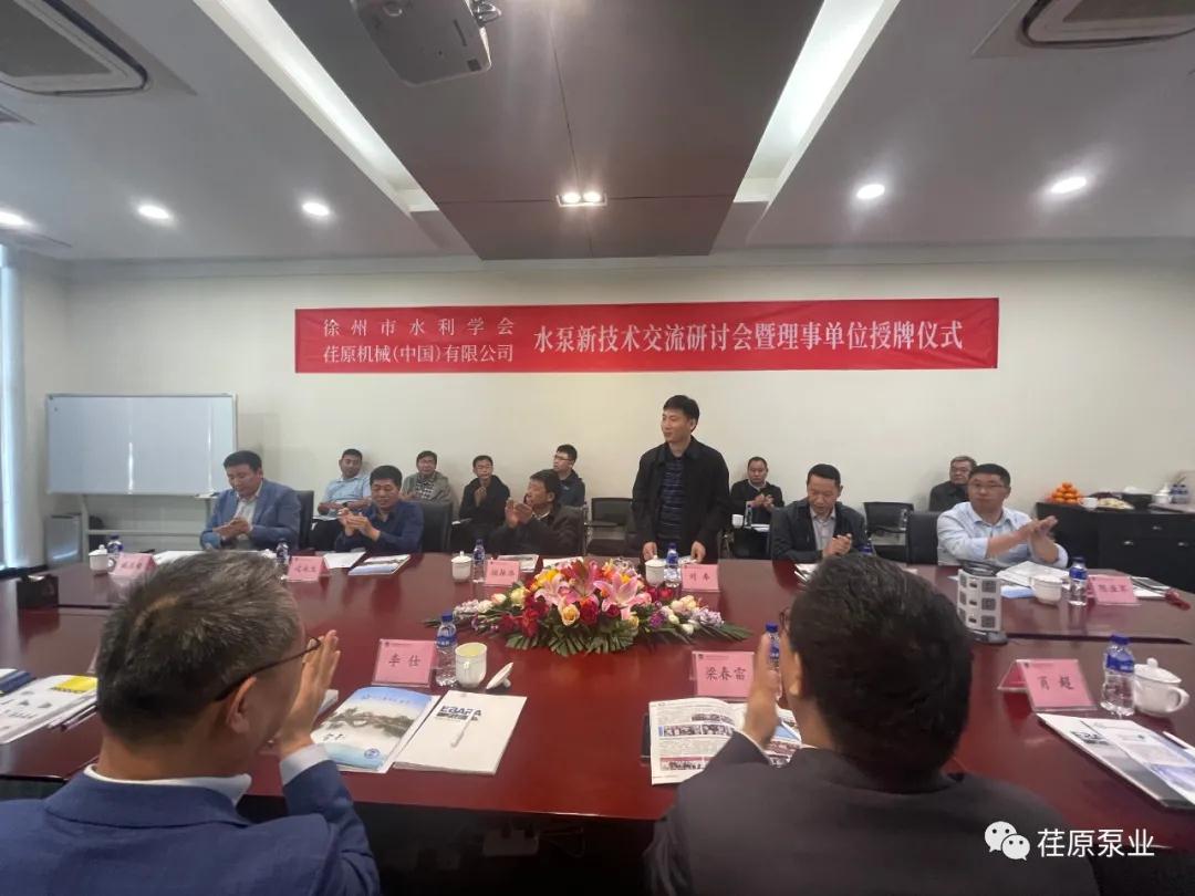 会后,徐州水利学会祖振华理事长和荏原机械(中国)公司副总经理李仕举行了理事会员单位授牌仪式。并与技术交流座谈会人员合影留念。