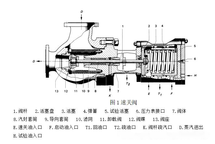 速关阀是新蒸汽管网和汽轮机之间的主要关闭机构,在运行中当出现事故时,它能在最短时间内切断进入汽轮机的蒸汽。