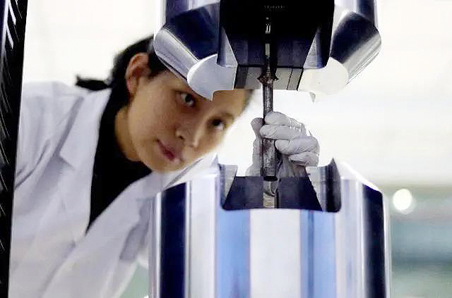 实验员正在进行拉伸试验