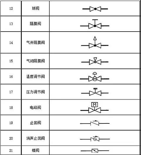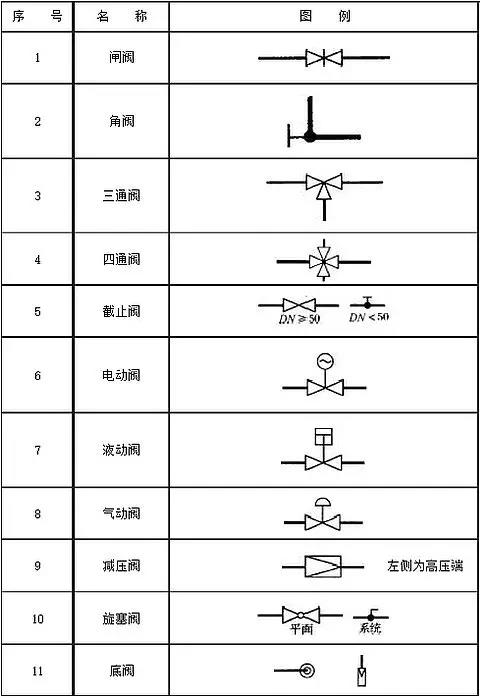 阀门图例(阀门图形符号)是指用绘图的方式将阀门用简单的图形描绘出来进行标注。阀门图例起到一个示意、标准的作用,一般来说,阀门图例的差异都不大,但也会存在一定程度上的区域性差别。阀门图例大全包括各个种类阀门的图例,其中也包含了球阀、蝶阀、闸阀、截止阀等多种常用阀门的符号信息。在给排水专业制图中,阀门图例大全是重要的参考资料。不同种类的阀门符号表示都不同,为帮助大家掌握各个阀门的符号表示方法,下面就为大家汇总下阀门图例大全,以供大家查阅。
