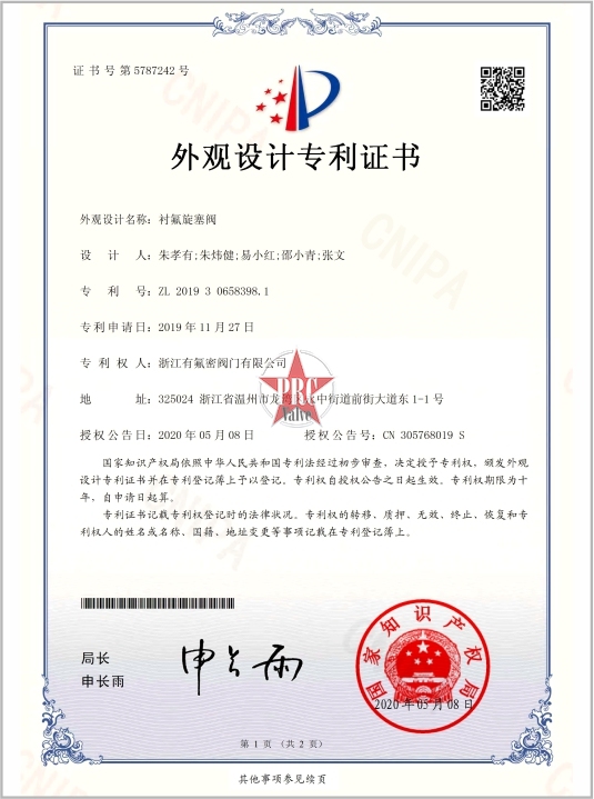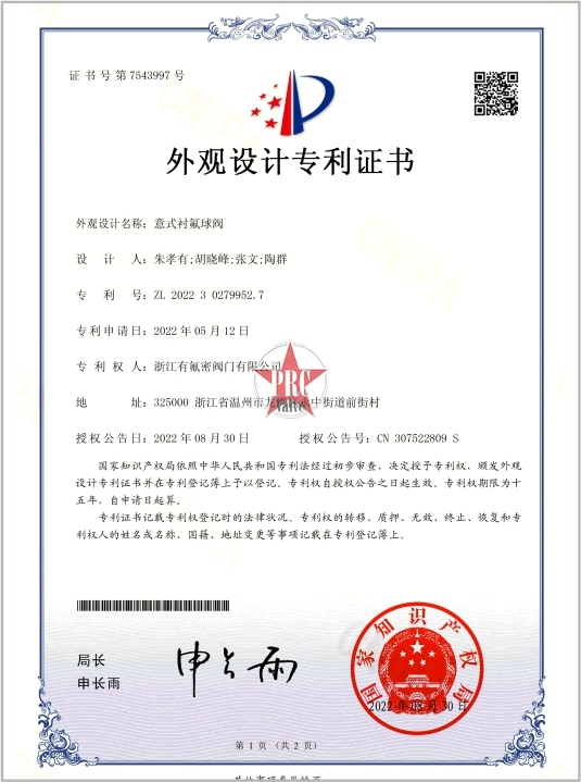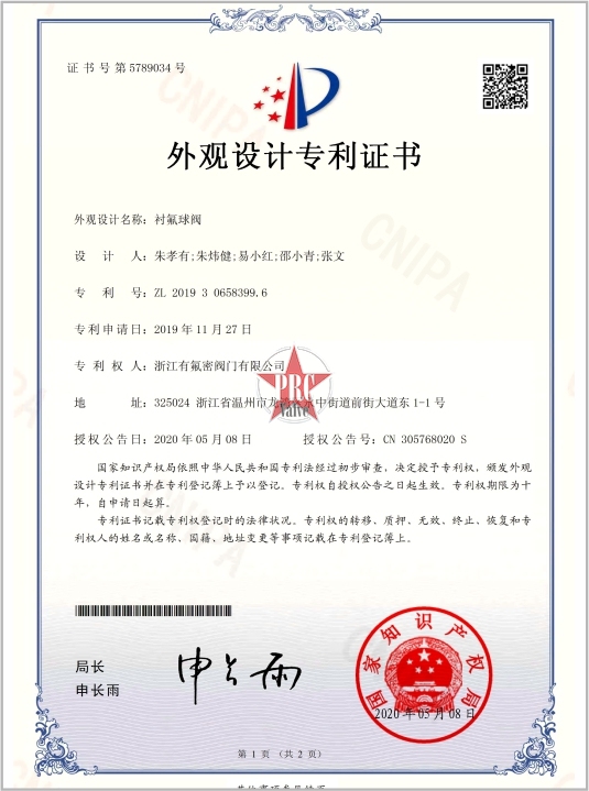 外观设计专利证书