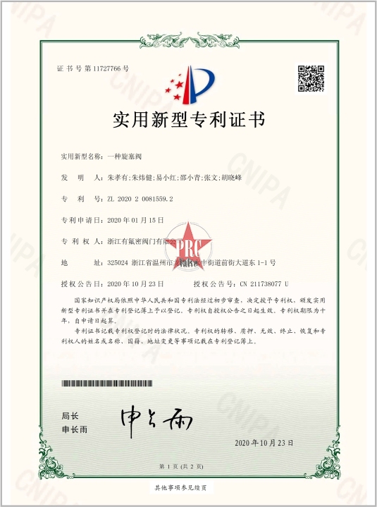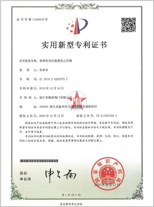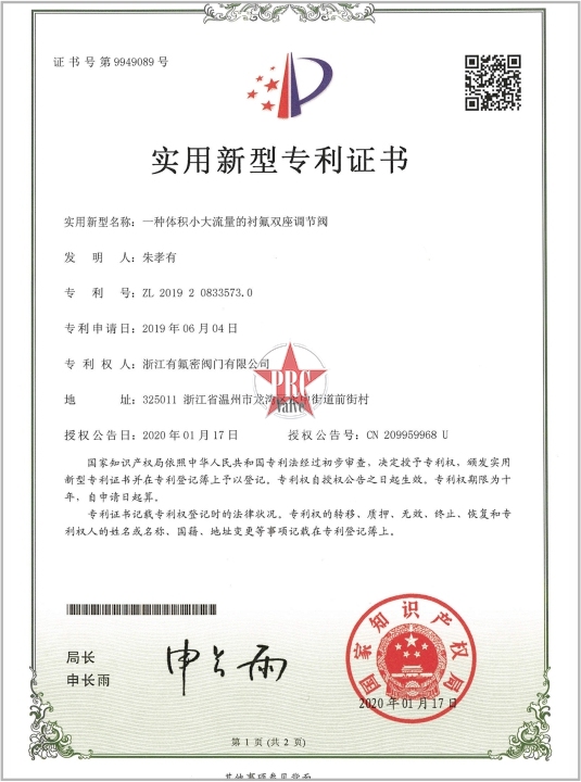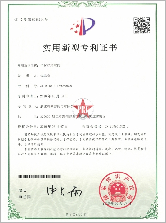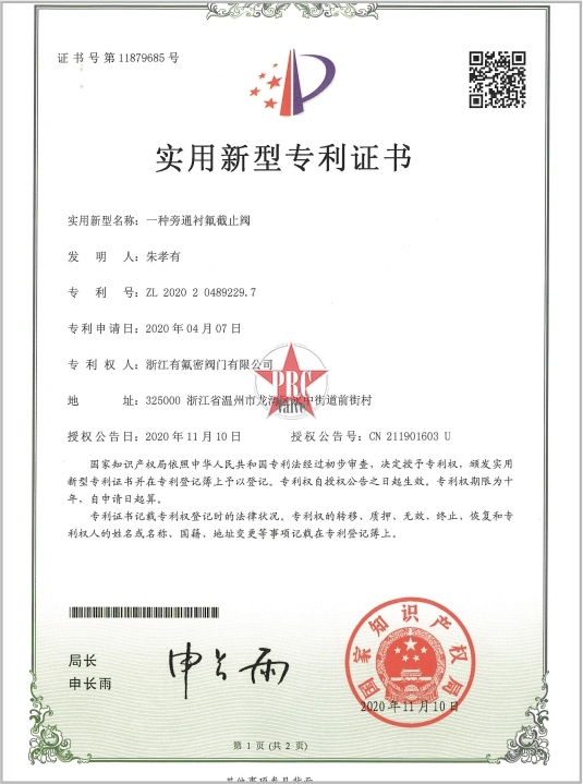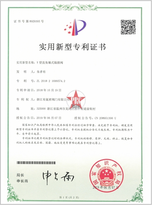 实用新型专利证书
