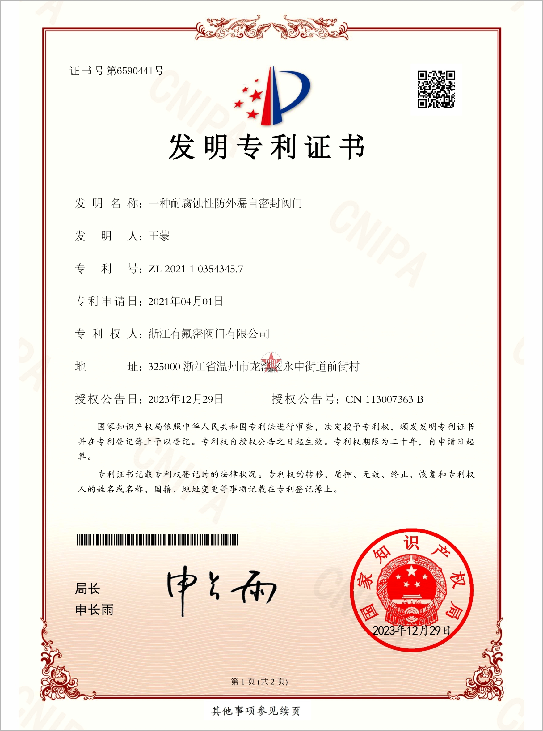 发明专利证书
