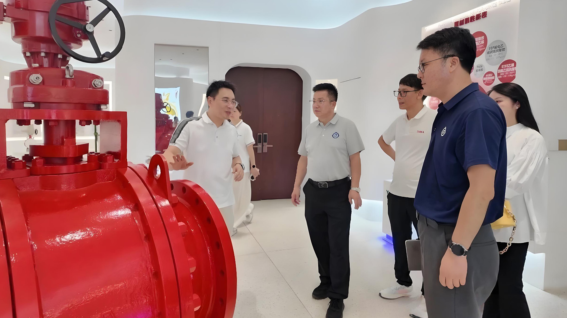 近日,兰州理工大学温州泵阀工程研究院院长马栋林一行5人莅临浙江永联阀门集团,开展实地考察与技术交流。永联阀门集团总经理沈民侠及相关部门人员全程陪同。
